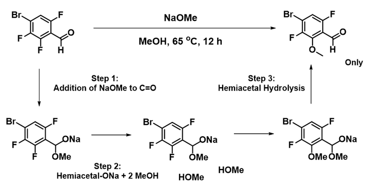 图1. 2,3,6-三氟-4-溴苯甲醛与甲醇钠的亲核取代反应